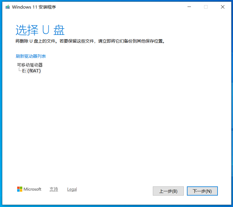 选择你插入的U盘(插多个U盘的小可爱记得别选错了哦),然后点击下一步。