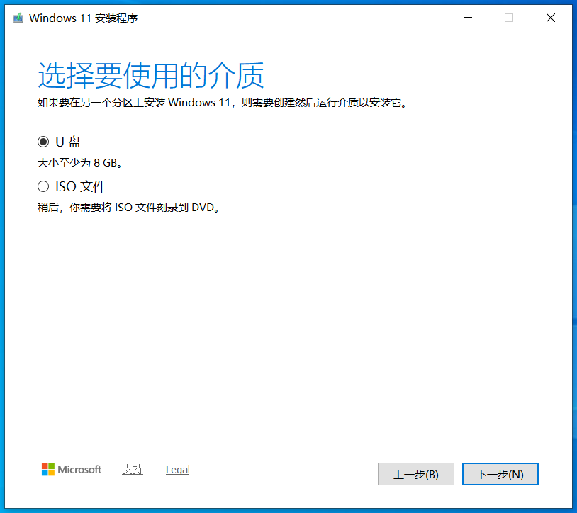 接下来的界面我们这边选择“U盘”,下面的“ISO文件”我后面会提到,这期先不管,然后下一步。